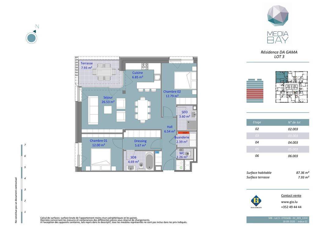 Felix Giorgetti vous propose ce magnifique appartement de 87,36 m² de surface habitable et 7,93 m² de terrasse au 4e étage de la résidence Da Gama sise au Kirchberg.