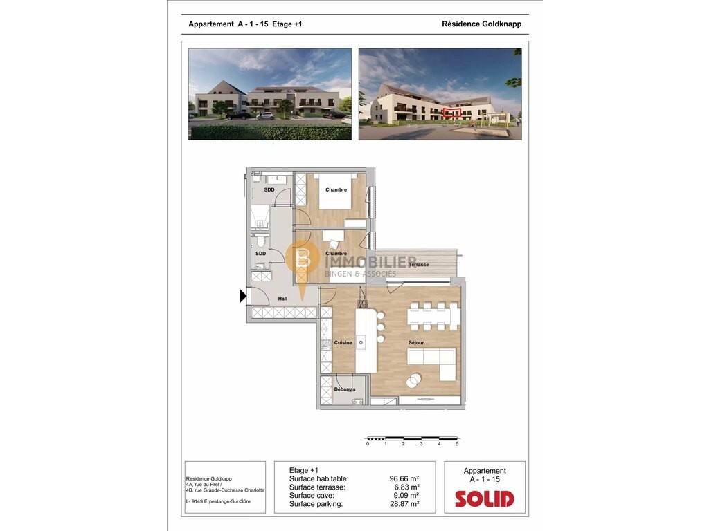 Surface habitable: 96.66 m² Surface terrasse: 6.83 m² Surface cave: 9.09 m² Surface parking: 28.87 m²