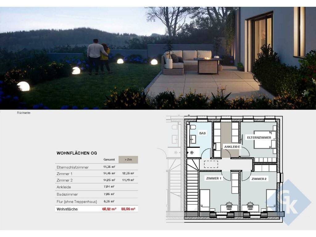 Aspects techniques : classe énergétique AB, pompe à chaleur air/eau, chauffage au sol avec thermostats individuels, VMC avec récupération de chaleur, équipement électrique et sanitaire attrayant, fenêtres en PVC avec triple vitrage et volets roulants électriques, porte d'entrée en alu, choix de carrelage moderne, etc.