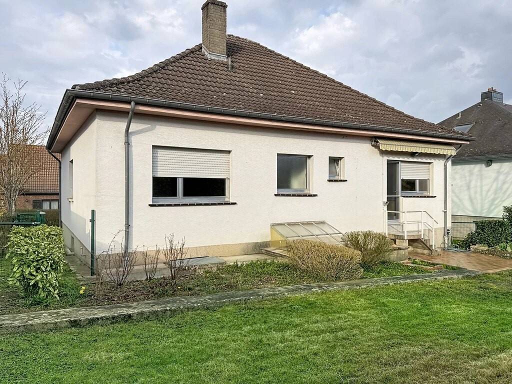 Située à Oberanven, cette maison libre de quatres faces, type bungalow, (12m * 12m) est idéalement placée à proximité de toutes les commodités. Elle occupe un vaste terrain de 4 ares 40 centiares.