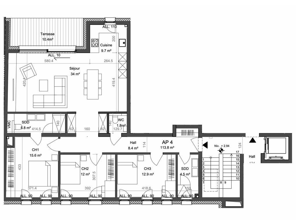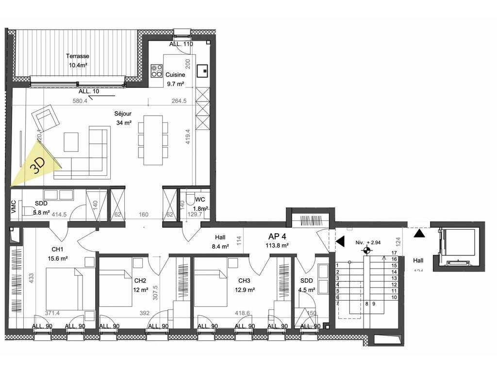Découvrez cet élégant appartement de 113,8 m², situé au premier étage, offrant un confort moderne et un agencement bien pensé, complété par une spacieuse terrasse.