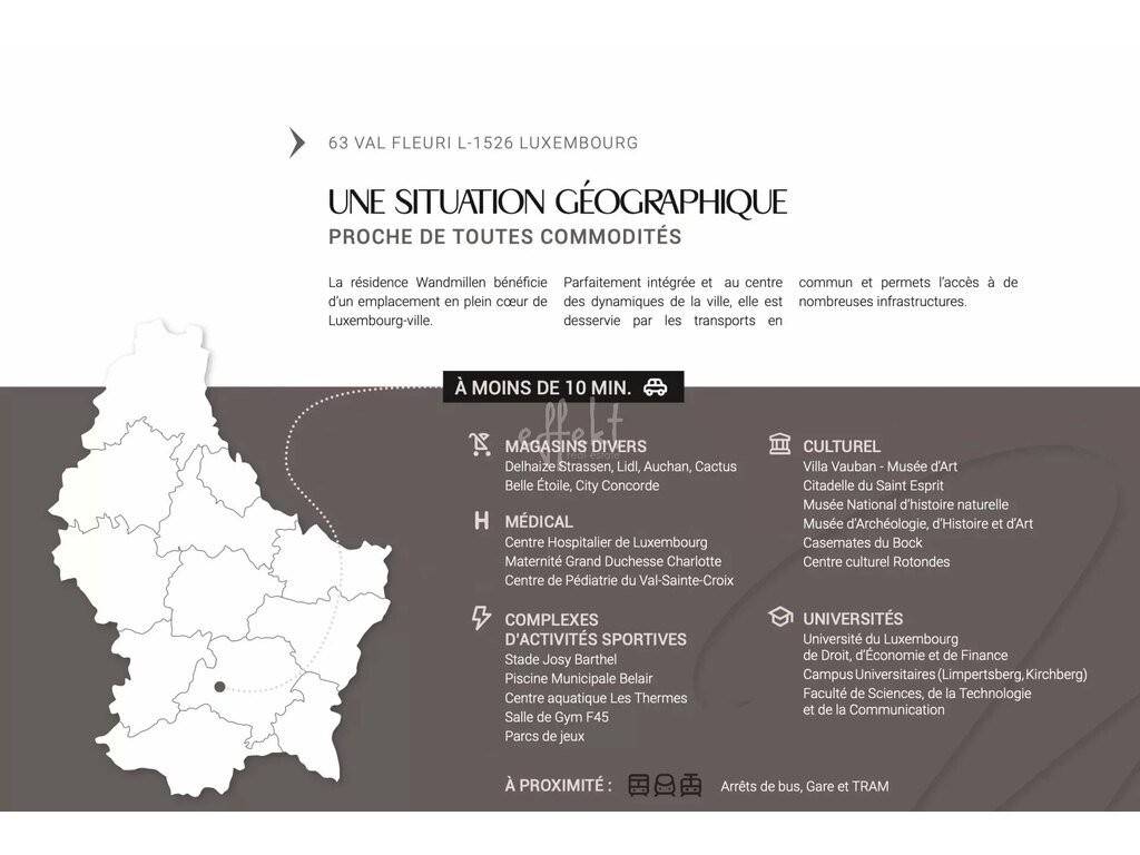 Bénéficiant d'une certification énergétique AAA, WANDMILLEN se distingue de par une architecture moderne, cossue et intemporelle. Il s'intègre parfaitement dans le contexte urbain existant. Priorité mise sur la qualité des équipements et des finitions .