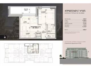 Situé au premier niveau, l'appartement une chambre dispose d'une surface habitable de 40,89 m2 et d'un balcon de 8,88 m2 .