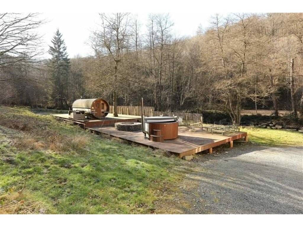 Elle se compose d'une maison meublée comprenant 2 unités d'habitation et une petite conciergerie attenante avec parking, terrasses, terrain de plaisance, sauna, petit étang, hangar, prairies et forêts.