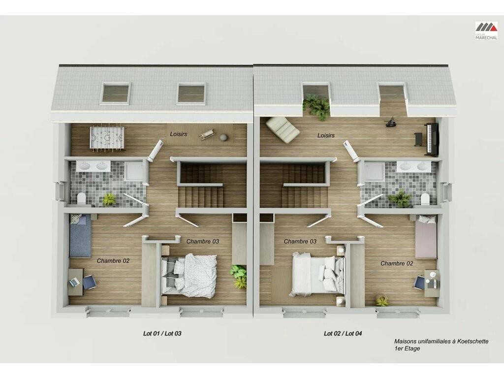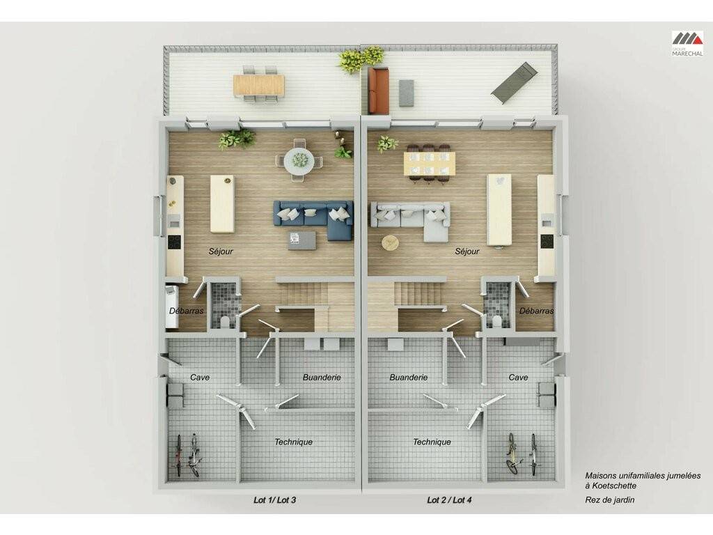L’agence immobilière HOME INVEST vous propose en exclusivité une maison moderne contemporaine (lot 3), jumelée par son côté droit d’une surface habitable de +/- 150 m2 (surface totale : +/- 271 m2), sur un terrain de 07 a 71 ca, établie sur 3 niveaux, à savoir :
