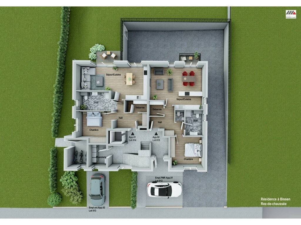 L’agence immobilière HOME INVEST vous propose en exclusivité un agréable et lumineux appartement (Lot 015) d’une surface habitable de 76,67 m2, avec balcon, situé au rez-de-chaussée dans la résidence « HARLES » à Bissen, qui se présente comme suit :