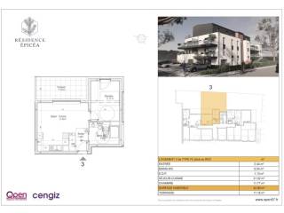 Découvrez le Lot 3 de la Résidence ÉPICEA à Aumetz, un appartement de type F2, d'une superficie de 42,9 m² situé au rez-de-chaussée, avec un extérieur de 11 m², proposé au prix de 150 000 €.