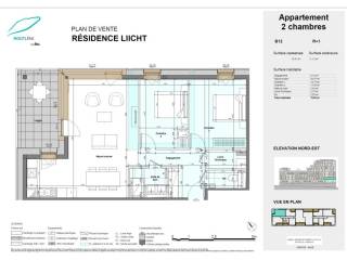Au sein de la résidence Liicht, IKO REAL ESTATE vous propose cet appartement neuf de 79,41 m² habitables situé au premier étage, comprenant un séjour/cuisine, deux chambres, une salle de bain avec WC séparé, une loggia de 11,12 m² et une cave privative.