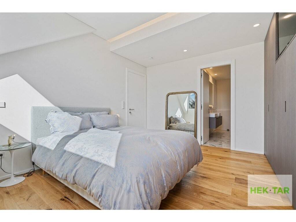 Le dernier niveau de la maison est composé de deux chambres spacieuses, chacune équipée de nombreux placards intégrés en bois sur-mesure et une salle de douche avec wc. Cet étage peut être utilisé comme une grande suite parentale.