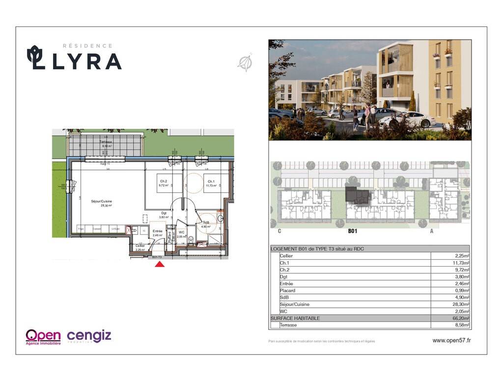 Découvrez le lot B1, un appartement de type F3 situé au rez-de-chaussée de la résidence. Il offre une surface habitable totale de 66,2 m2, complétée par une terrasse de 8,58 m2, parfaite pour profiter des beaux jours.