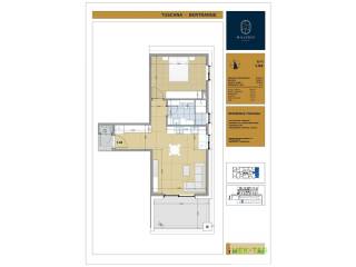 L'appartement C3_1_04 d'une surface habitable d'environ 54,26m2 situé au 1er étage offre une spacieuse entrée avec un WC séparé, menant à un lumineux séjour agrémenté d'une magnifique terrasse de 10,43m2.