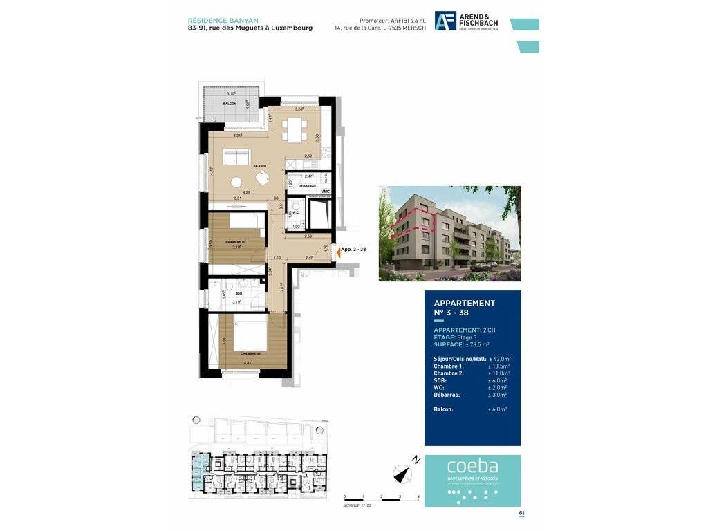 L'appartement 3-38 de 78,53m2 se compose comme suit :