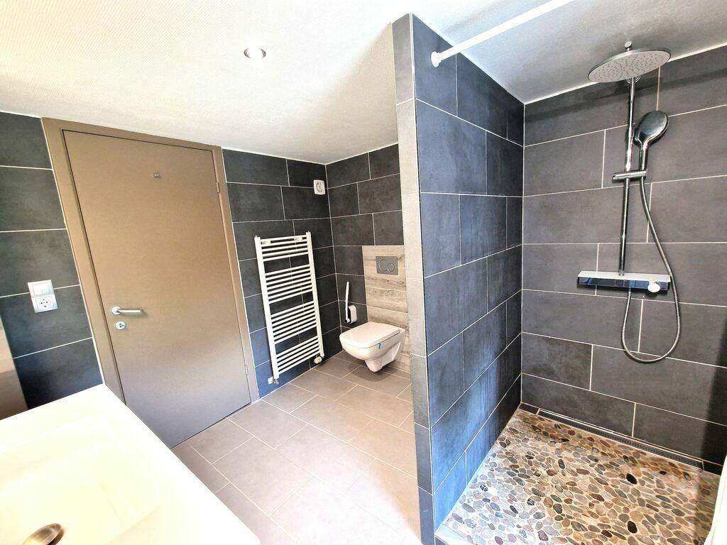 À l’étage, vous découvrirez une salle de bain élégante avec douche à l’italienne, une suite parentale accueillante ainsi qu’une seconde chambre actuellement utilisée à d'autres fins,