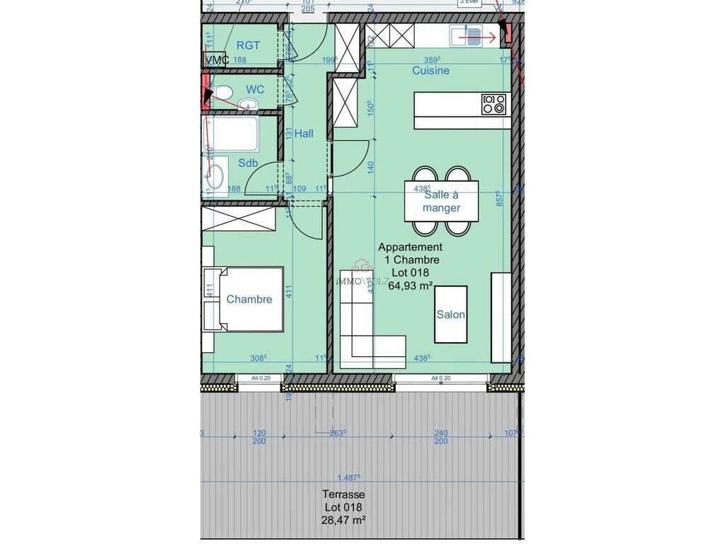 Situé au 1er étage d'une résidence contemporaine de 2021, ce charmant appartement de 64,93 m² habitables séduit par ses finitions, son agencement fonctionnel et sa spacieuse terrasse.