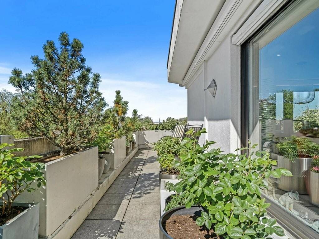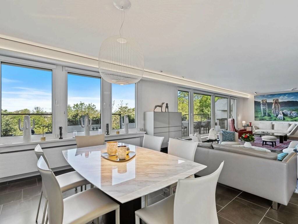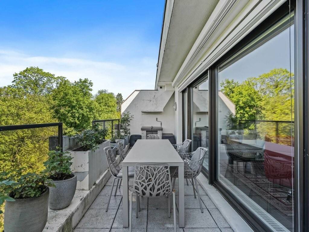 Bordering directly on the municipal park, the penthouse offers a setting that is both lively and peaceful, with an unobstructed view over the treetops and, beyond, the urban skyline. It is a privileged location for those seeking an upscale city lifestyle without compromise on comfort or privacy.
