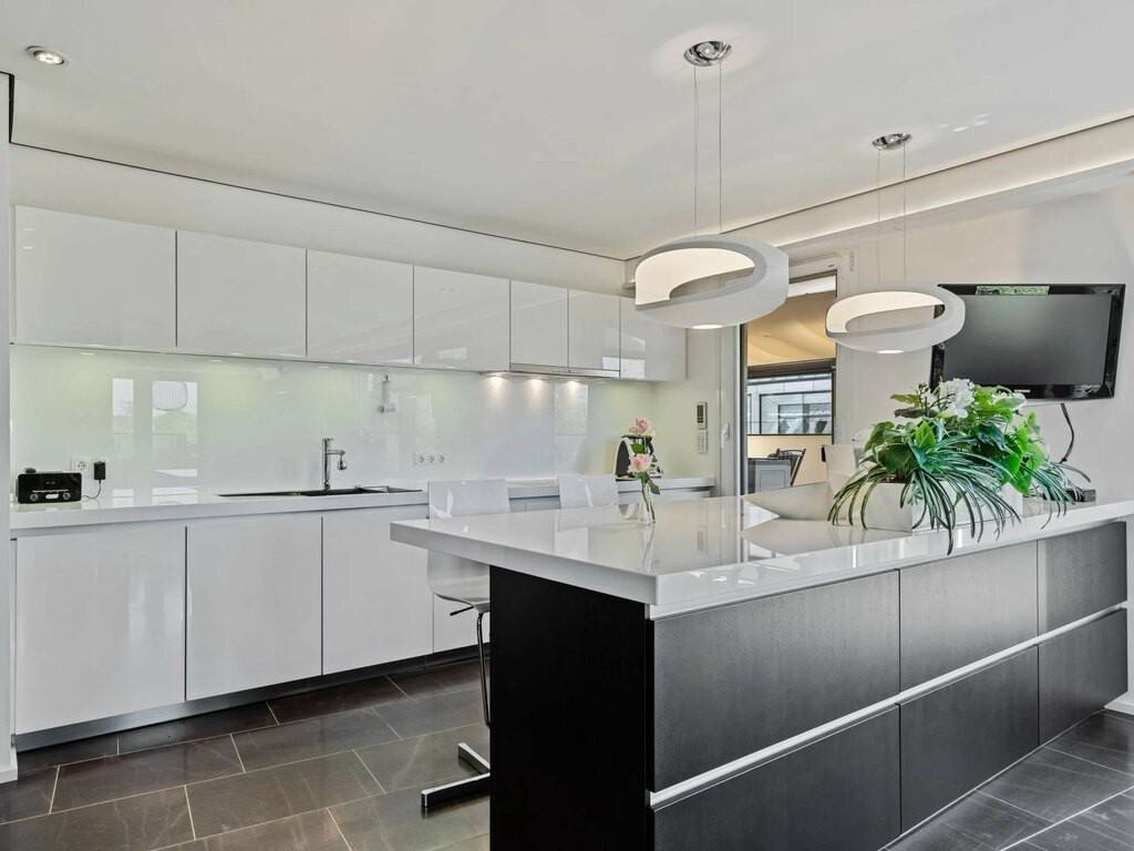 Access to the 6th floor landing is secure and private. Upon entering, one discovers a vast corner living room of ±62m², with large bay windows, extended by an open kitchen of ±21m². These living spaces open onto a magnificent ±57m² terrace, partially covered by a veranda and equipped with sunshades. The south-western exposure ensures plenty of natural light throughout the day. On the west side, the living room and terrace offer an unobstructed view of the park.