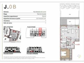 Appartement 1 chambre situé au rez-de-chaussée de la Résidence Jardins d'une superficie totale de 76,9m² avec un jardin de 37,7m² et d'une terrasse de 21,7m².