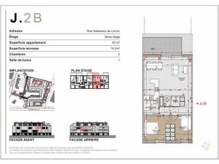 Appartement 2 chambres situé au 2ème étage de la Résidence Jardins d'une superficie de 93m² avec une terrasse de 14,2m².