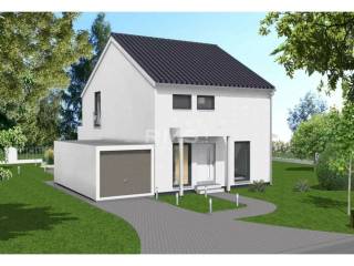 Cette maison individuelle moderne en bois offre un concept d'espace intelligemment planifié avec trois chambres à coucher spacieuses, un espace cuisine ouvert ainsi qu'un salon et une salle à manger clairs et accueillants - idéal pour les familles ou les couples qui attachent de l'importance au confort de vie.