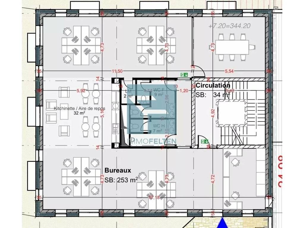 Le Bureau immobilier Felten vous propose à la location un étage complet de 230m², situé dans un environnement calme et verdoyant, idéal pour allier productivité et bien-être au travail.