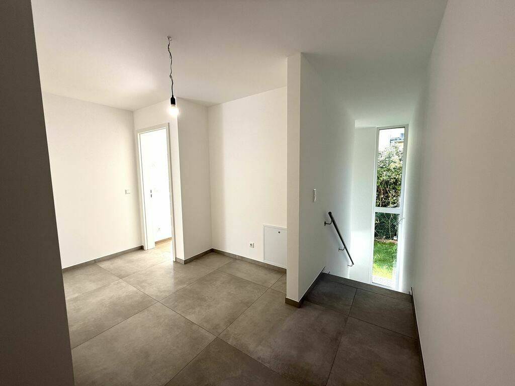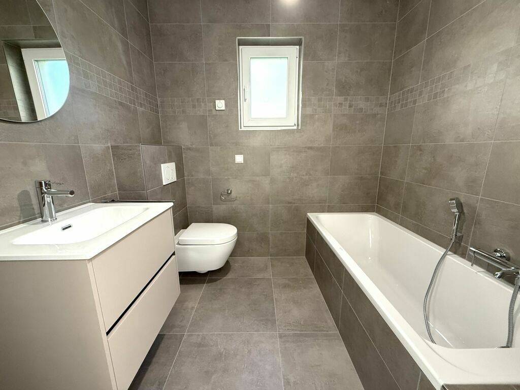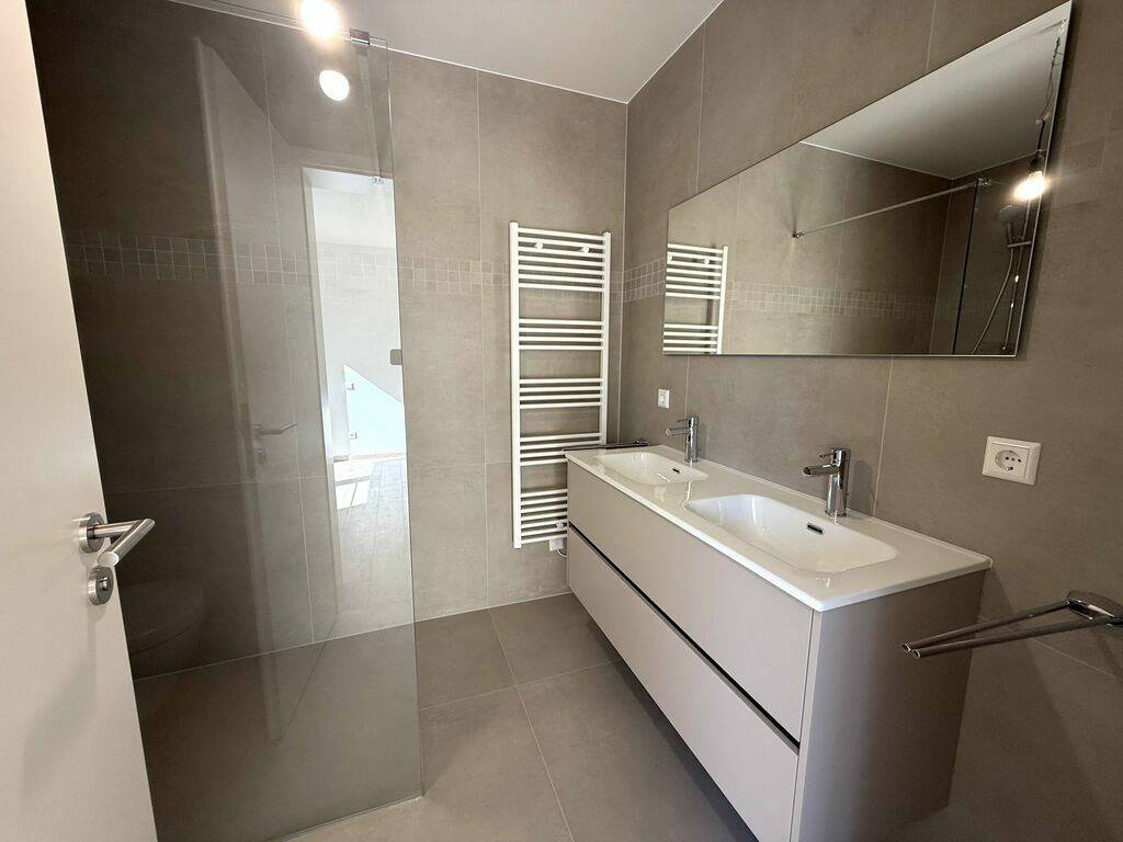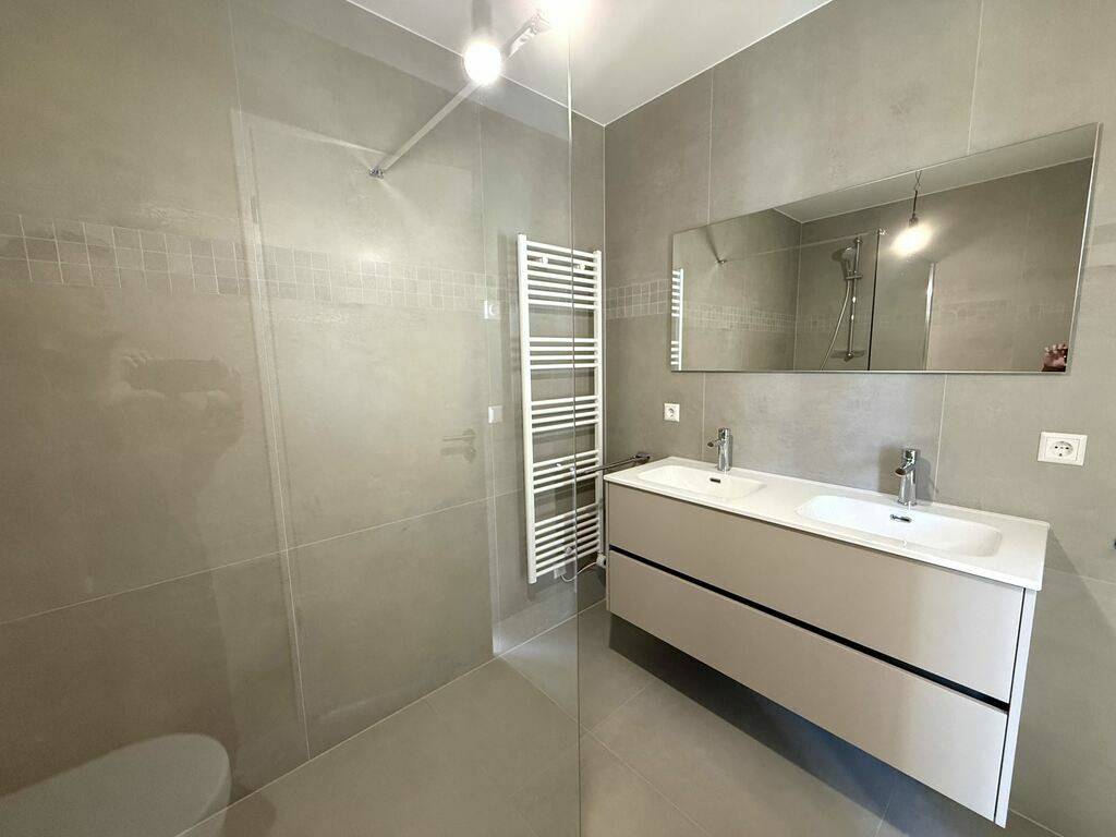 Etage -1 (niveau rez-de-jardin): hall d'entrée, WC séparé, 1 débarras, 1 grande chambre avec salle de bain, un grand living lumineux ouvert sur cuisine 48m2 avec accès direct sur une belle terrasse de 40m2 et jardin privatif de 400 m2 environ, vue imprenable.