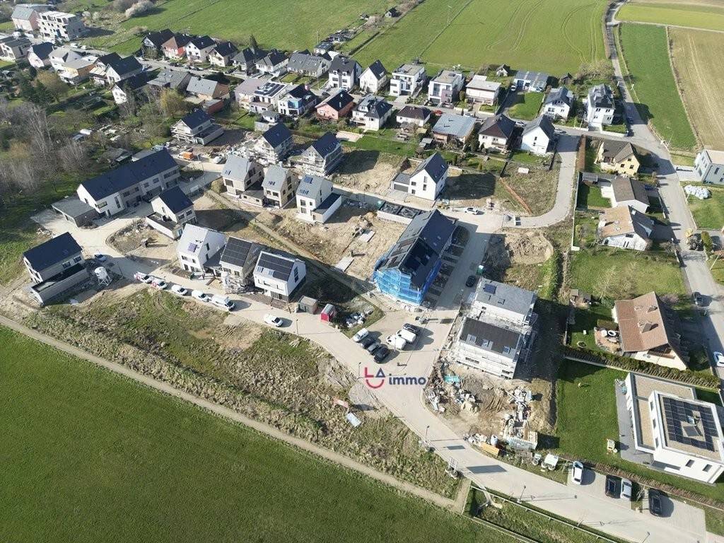 LA Immo vous présente, dans le nouveau lotissement « Iwwert der Sauerwiss » à Hellange, cette belle maison unifamiliale, jumelée par le garage, offrant 157 m² de surface habitable (y compris combles aménageables) pour une surface totale de 228 m2 sur un terrain de 4,49 ares.