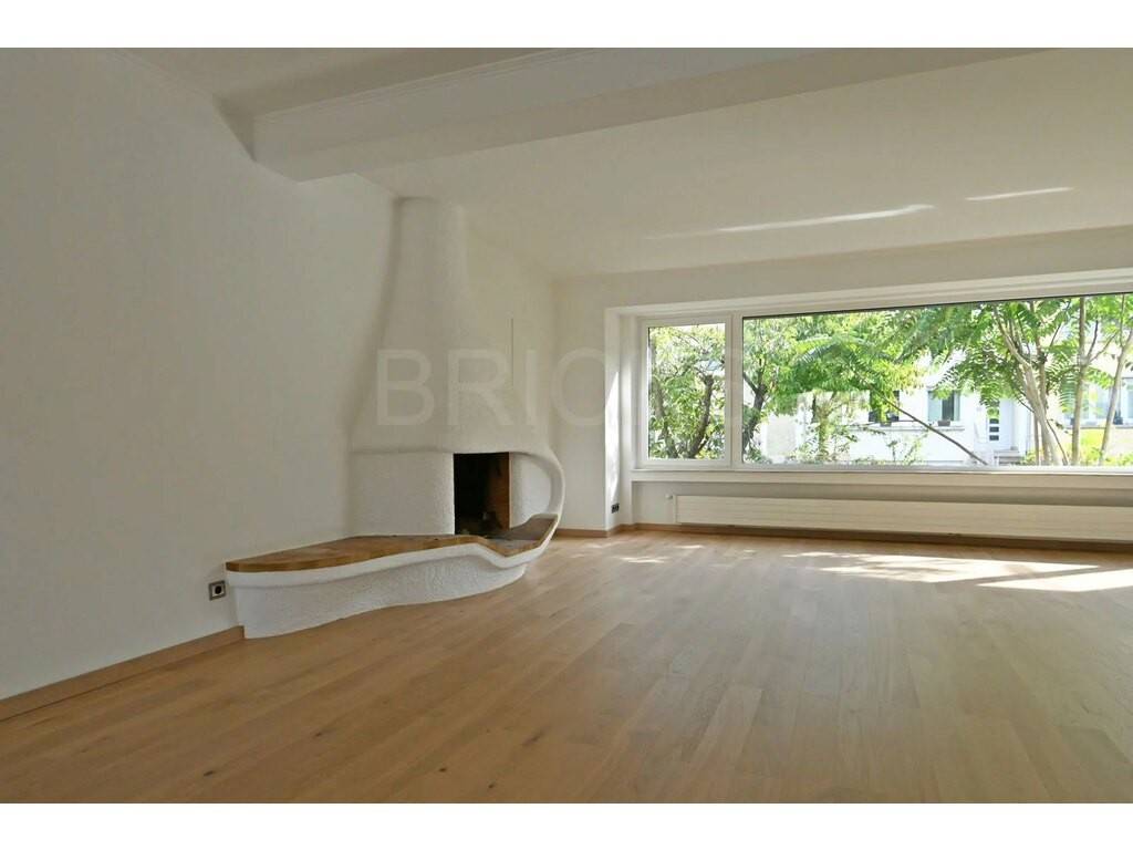 Hall d’entrée avec un bel escalier qui mène vers les étages, accès au sous-sol, WC invités, cuisine équipée (lave-vaisselle, four, plaques de cuisson, hotte, frigidaire, congélateur), séjour avec une cheminée ayant une belle luminosité grâce à une double exposition donnant accès à la grande terrasse de 40 m2 et au jardin.