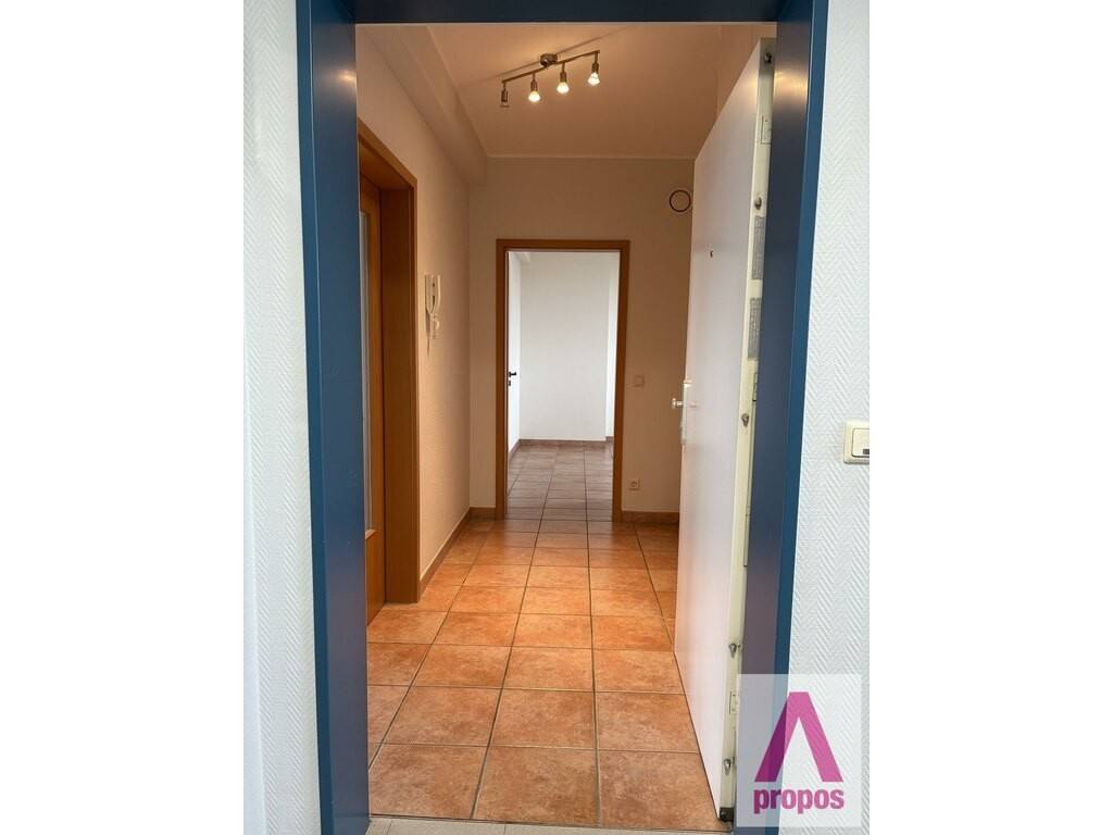 un hall d'entrée, séjour avec accès sur beau balcon exposé sud/ouest de ± 10,40 m², cuisine équipée séparée habitable, 1 chambre à coucher, salle de bains, pièce débarras/buanderie