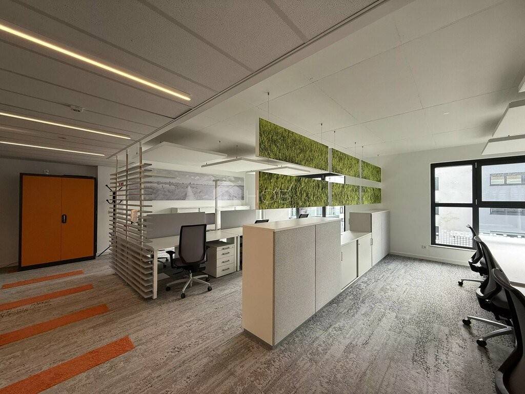 - Surface totale : environ 210 m - Peut accueillir jusqu'à 25 postes de travail - Entièrement meublé - mobilier de bureau moderne et fonctionnel inclus - De grandes baies vitrées à triple vitrage et cadres en aluminium garantissent des espaces de travail lumineux et agréables - Chauffage au plafond avec géothermie - approvisionnement en chaleur efficace et durable - Stores pour une protection solaire optimale - Connexion fibre optique – infrastructure numérique parfaite - Ascenseur et accès sans barrières - Éclairage extérieur tout autour du bâtiment