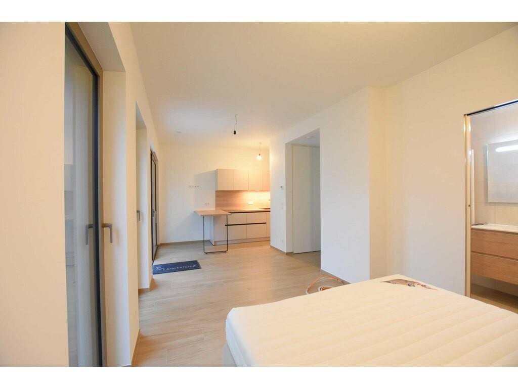 Studio neuf meublé au rez-de-jardin dans la nouvelle résidence Brooklyn à Luxembourg-Bonnevoie, quartier vivant et très bien connecté par transport public (tram (arrêt Dernier Sol), train, lignes de bus).