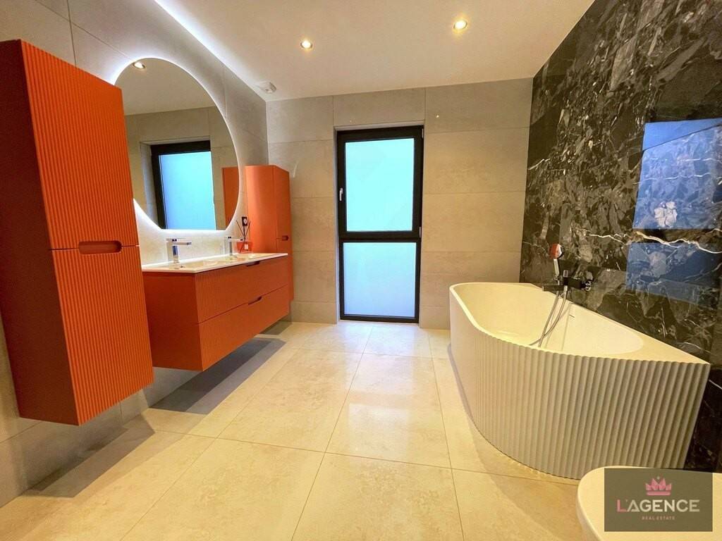 L'Agence Real Estate vous propose une magnifique maison individuelle récente (construction 2023), offrant de très beaux volumes avec une surface habitable de +/- 246 m² (surface totale de +/- 290 m²). Érigée sur un terrain de 6,89 ares, cette propriété bénéficie d'une exposition "Sud/Sud-Est", idéale pour profiter d'un ensoleillement optimal.