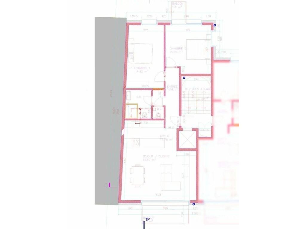 Apartment Lot 06 on the second floor has a cadastral area of ±77,78m² and 2 balconies of ±7,5m² in total. It is divided as follows: