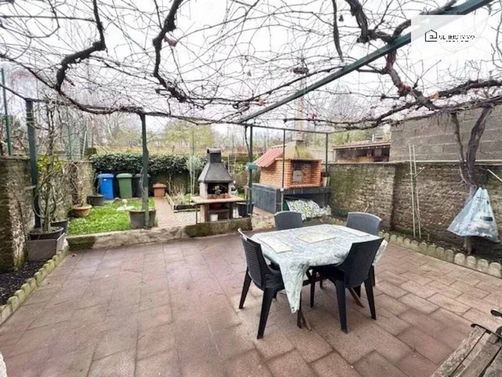 À l’arrière, une cour privative avec four permet de profiter d’un espace extérieur agréable.