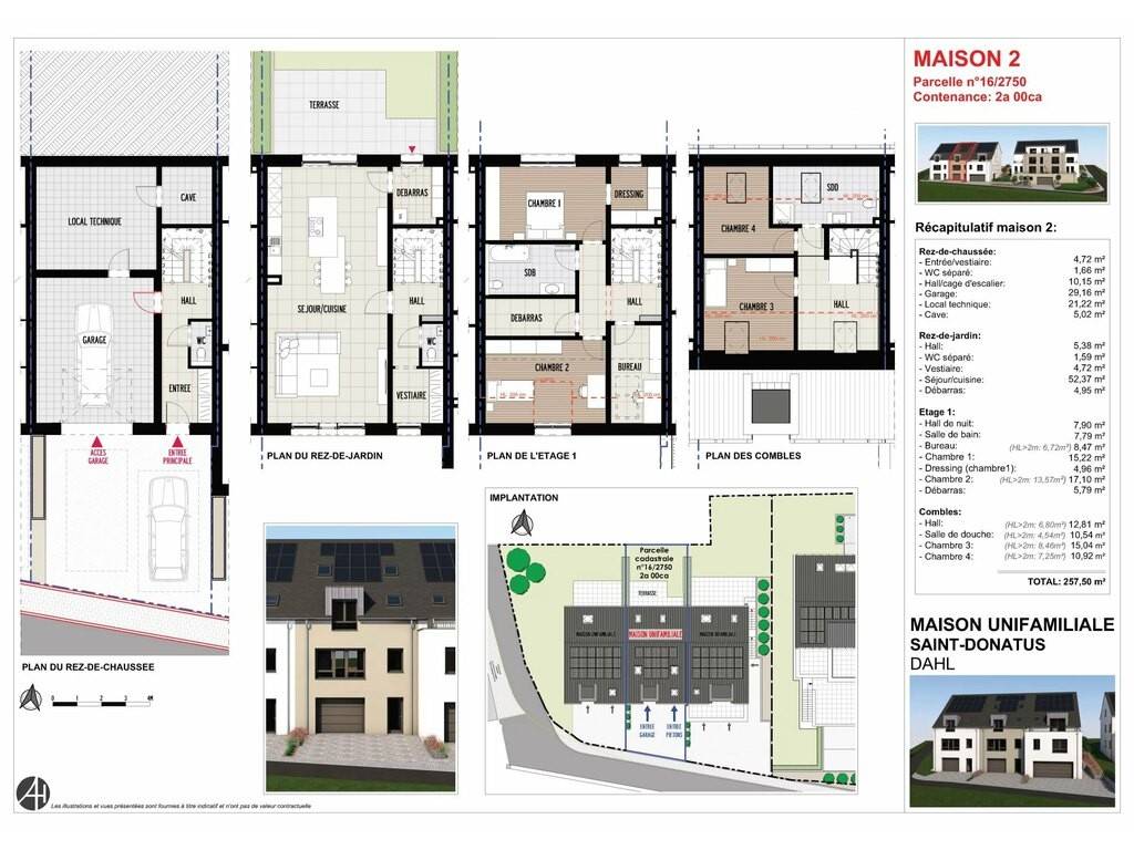 Le terrain développe une surface de 2 ares, permettant la construction d’une maison d’une surface totale de ± 257,50 m², idéale pour une habitation familiale spacieuse ou un projet patrimonial de qualité.