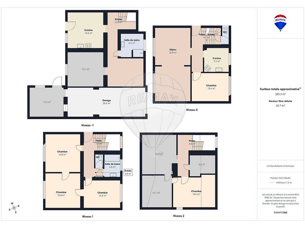 Pièces de 16,6 m², 12,1 m² et 16,4 m²