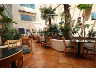 Le Restaurant est équipé d'un Bar, une cuisine professionnelle aux normes, puis d'une grande Salle Climatisée dans une galerie à l'intérieur de l'immeuble. La capacité d'accueil est de 120 couverts, ainsi que 60 couverts sur une terrasse extérieure.