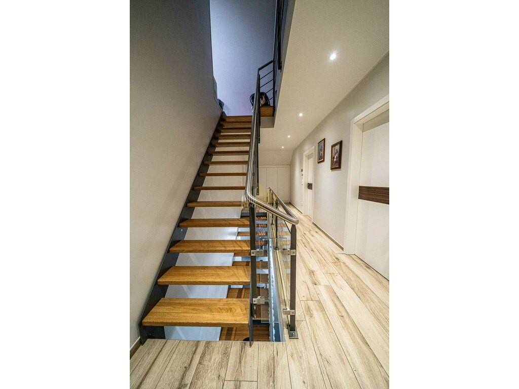 Un portail électrique ouvre l'accès au garage et à l'entrée couverte, ce qui augmente encore le confort. Cette propriété offre une combinaison parfaite de vie élégante et d'équipements techniques, ce qui en fait l'endroit idéal pour profiter de la vie de famille dans un environnement calme et convivial.