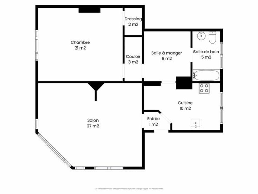 3eme appartement : Un séjour (27), une cuisine (10) , une salle de bain avec WC , 1 chambre (20) , une buanderie (8) ;