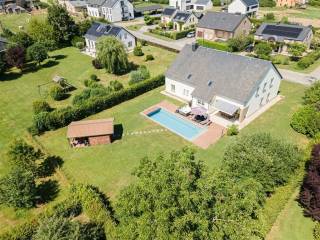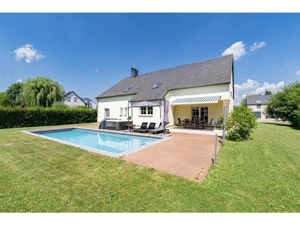 W Immobilière vous propose, dans le charmant village d’Autelbas-Barnich, une splendide villa avec garages, jardin et piscine. Ce bien, en excellent état d’entretien, développe une superficie habitable d’environ 300 m² et se compose au rez-de-chaussée d’un hall d’entrée accueillant, d’un WC séparé, d’un vaste séjour lumineux de 52 m², d’une cuisine équipée, d’une salle de bains, d’une chambre ainsi que d’un grand garage pouvant accueillir deux véhicules et disposant d’une chaufferie. À l’étage, vous trouverez un hall de nuit desservant six chambres spacieuses, dont certaines atteignent 35 m², ainsi qu’une seconde salle de bains. Les volumes intérieurs sont généreux et offrent un cadre de vie confortable et fonctionnel. À l’extérieur, les aménagements soignés comprennent une allée de garage en pavés autobloquants, de beaux espaces verts et un agréable jardin orienté sud-ouest, garantissant un ensoleillement optimal tout l’après-midi et en soirée, notamment dans le séjour. À l’arrière de la maison, vous profiterez d’une magnifique piscine creusée, chauffée via une pompe à chaleur, ainsi que d’une belle terrasse idéale pour les moments de détente. Un abri de jardin est également présent pour le rangement de votre matériel. Ce bien dispose d’un certificat PEB en classe C et d’une installation électrique conforme. Il s’agit d’une opportunité rare alliant confort, espace et prestations de qualité dans un cadre paisible.\nPour tous renseignements: W Immobilière - 063 227 277 - www.wimmobiliere.com\n\nLes informations fournies par l’agence ont un caractère indicatif et non contractuel. En conséquence, elles ne peuvent engager la responsabilité de l’agence et ne dispensent pas la personne intéressée de réaliser les vérifications