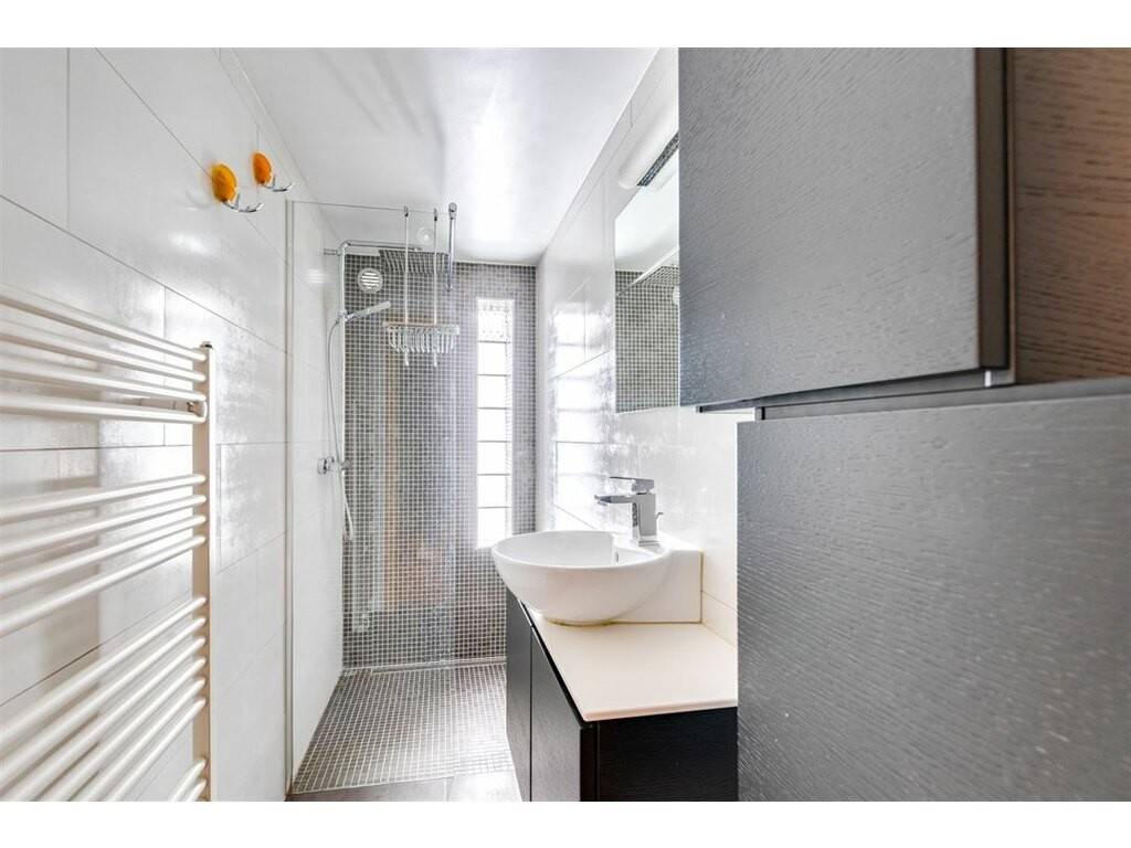 La mezzanine, à l’étage, constitue une pièce supplémentaire, pouvant servir de deuxième salon ou de bureau. Les deux salles de bains, magnifiquement rénovées, apportent un confort moderne, avec un accès direct à la suite parentale pour l’une d’elles.