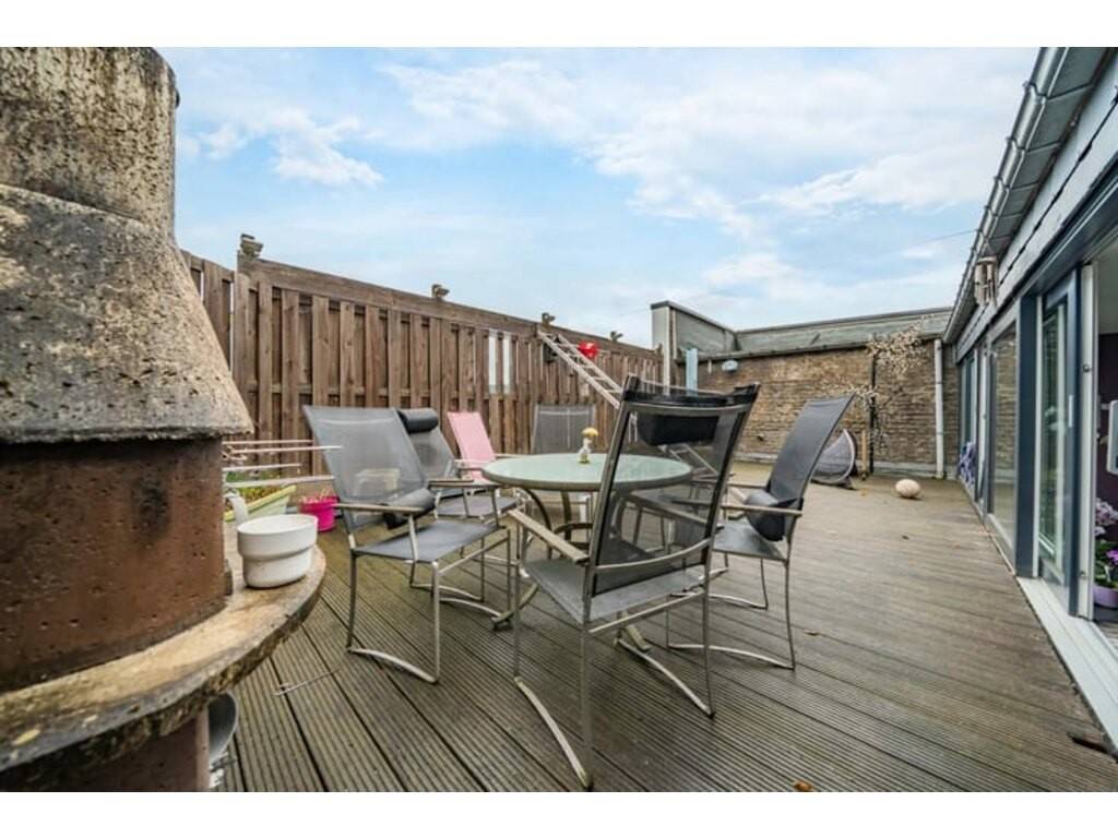 L'étage propose un spacieux appartement de +/- 180 m² avec grande terrasse aménagée sur l'arrière. Ce dernier doit faire l'objet d'une régularisation urbanistique.