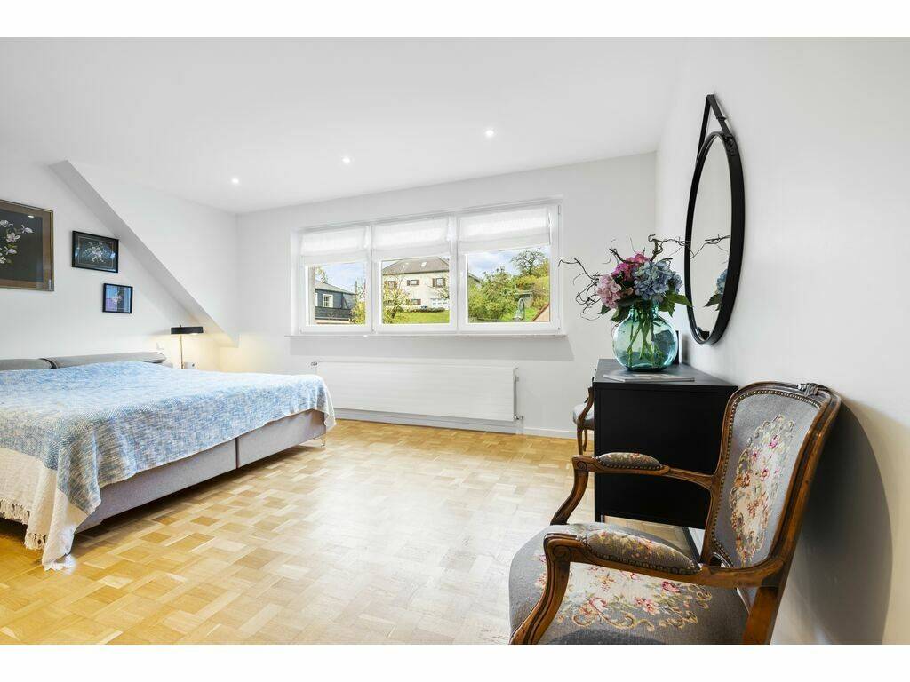 L'appartement se distingue par ses 4 chambres spacieuses, son bureau, son vaste séjour avec salle à manger, une cuisine individuelle ainsi que 3 salles de bains/douche avec toilettes intégrées, complétées par un WC séparé pour les invités. Une buanderie privative et un grenier sont également intégrés à l'appartement.