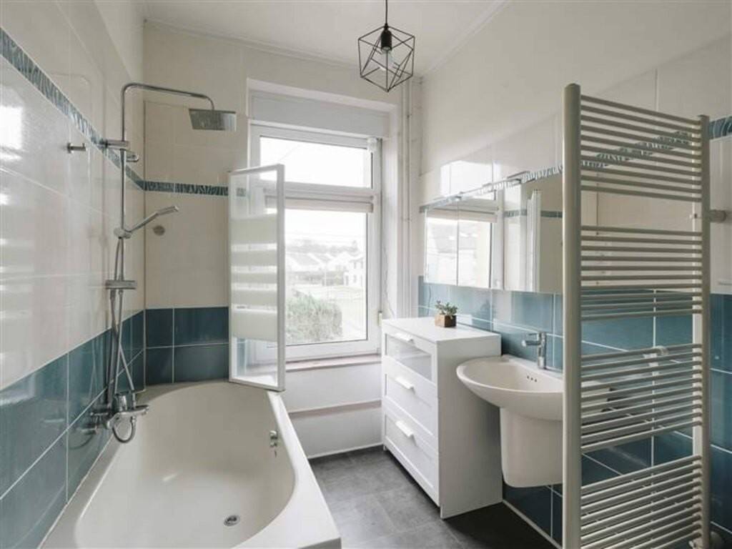 Au 1er étage, le hall de nuit dessert 2 belles chambres accompagnées d'une salle-de-bain avec WC, bain-douche, évier et sèche-serviettes.