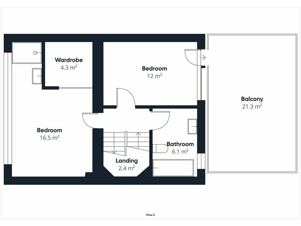 2eme étage : hall de nuit (2,4 m²) - 2 chambres à coucher (16,5 m² + 12 m²) dont l'une est en suite avec une salle de douche ainsi qu'un dressing aménagé sur mesure (4,3 m²) - salle de bain supplémentaire (6,1 m²) - terrasse orientée ouest (21,3 m²)