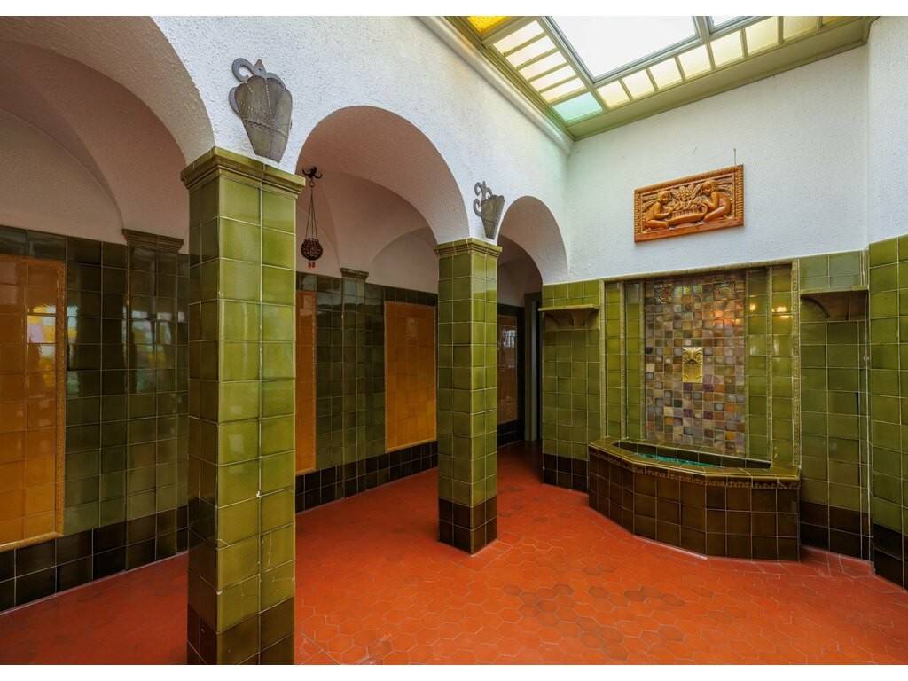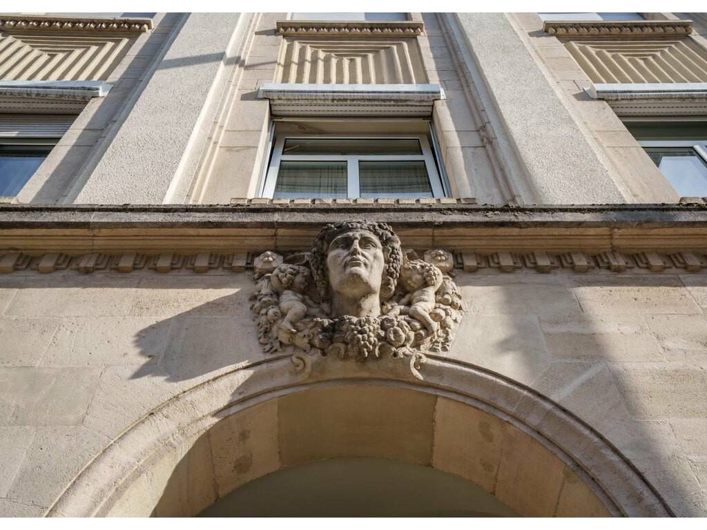On y retrouve de magnifiques éléments d’époque : façade en pierre sculptée, plafonds en stuc, escaliers et parquets anciens, vitraux colorés, jardin d’hiver et couloir voûté.