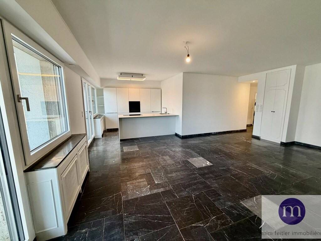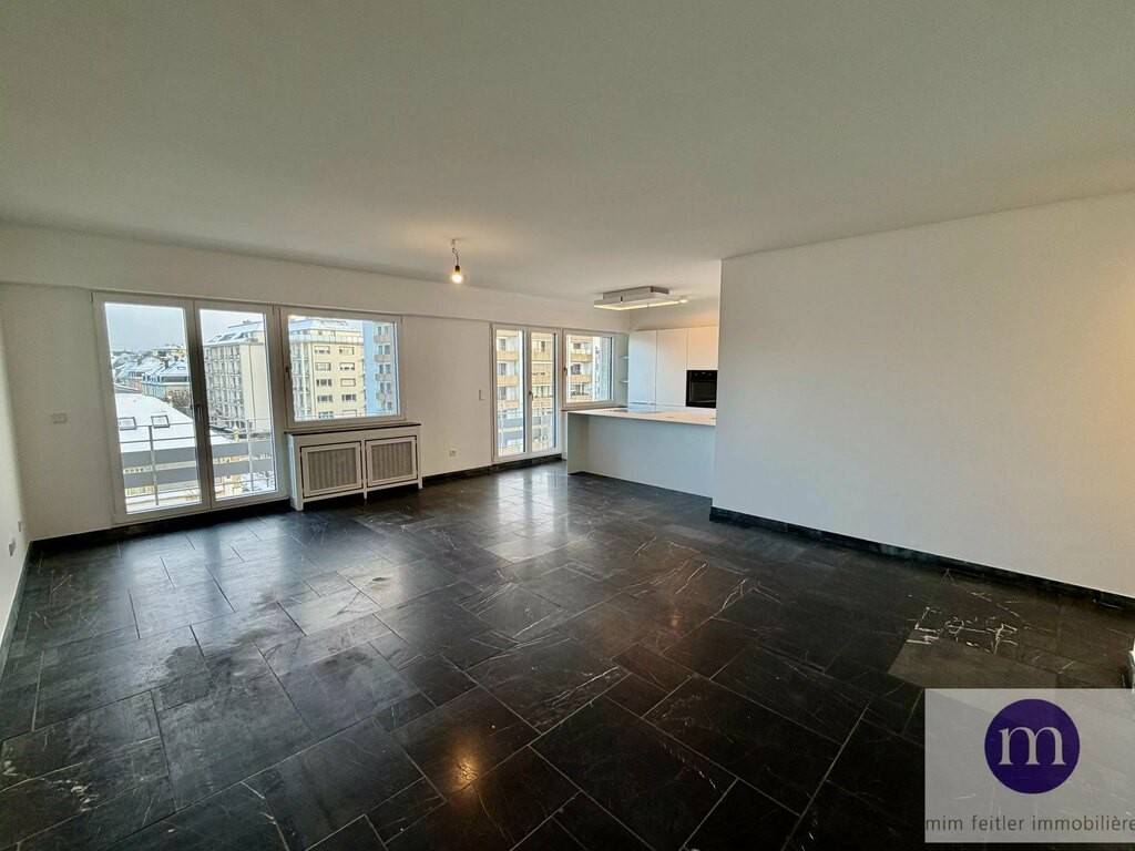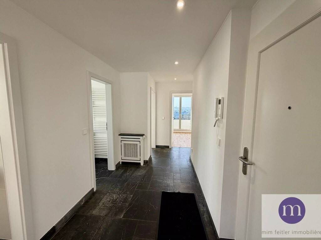 Appartement entièrement rénové très lumineux avec belle vue dégagée à louer sis au 5ème étage de 106 m2. Le bien est agencé comme suit: living avec cuisine équipée donnant sur 2 balcons et placard; 3 chambres à coucher dont une chambre avec placards et une chambre parentale avec salle de douche et balcon, hall d'entrée avec placard (raccordement lave-linge), WC séparé avec fenêtre, salle de douche avec fenêtre, cave, emplacement-souterrain