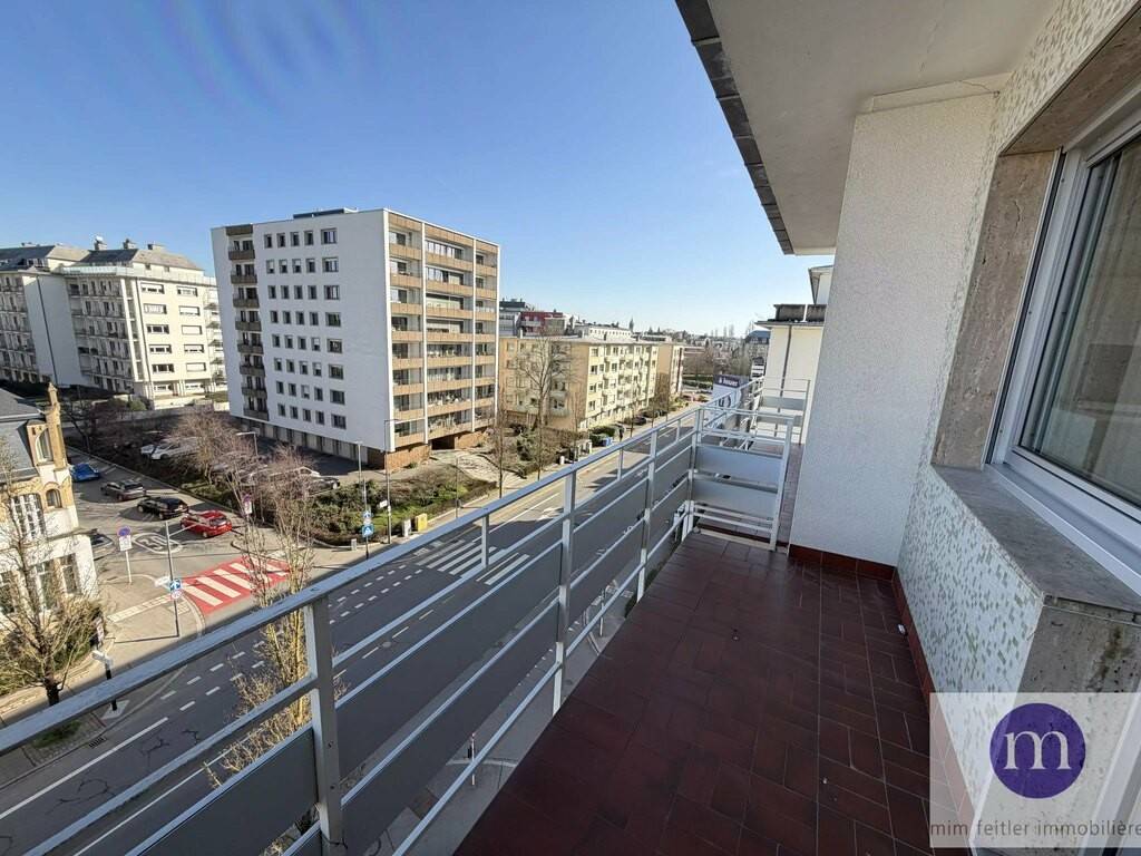 Appartement entièrement rénové très lumineux avec belle vue dégagée à louer sis au 5ème étage de 107 m2. Le bien est agencé comme suit: living avec cuisine équipée donnant sur 2 balcons et placard; 3 chambres à coucher dont une chambre avec placards et une chambre parentale avec salle de douche et balcon, hall d'entrée avec placard (raccordement lave-linge), WC séparé avec fenêtre, salle de douche avec fenêtre, cave, emplacement-souterrain