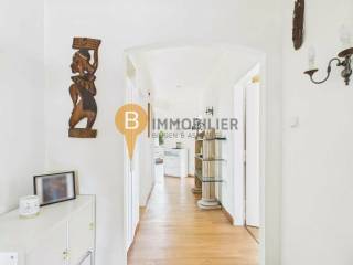 Grand salon lumineux avec baie vitrée, 3 chambres dont 2 avec eau courante, cuisine équipée donnant sur une terrasse, salle de bain avec place pour machine à laver et séchoir, WC séparé, au sous-sol cave privative et parcelle dans local commun pour vélos, trottinettes, poussettes.