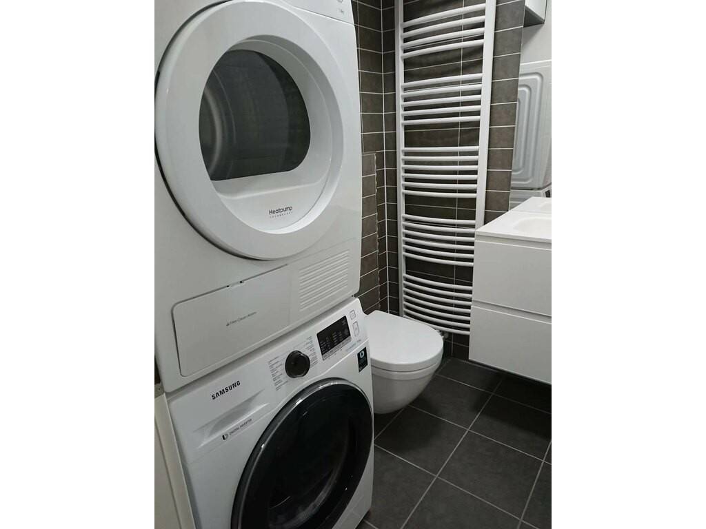 L'appartement situé au premier étage est composé comme suit: - hall d'entrée avec un placard intégré - cuisine équipée ouverte sur la salle à manger et le salon qui possède beaucoup de rangements - une chambre - une salle de douche avec machine à laver et sèche-linge - une cave privative