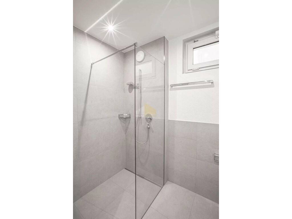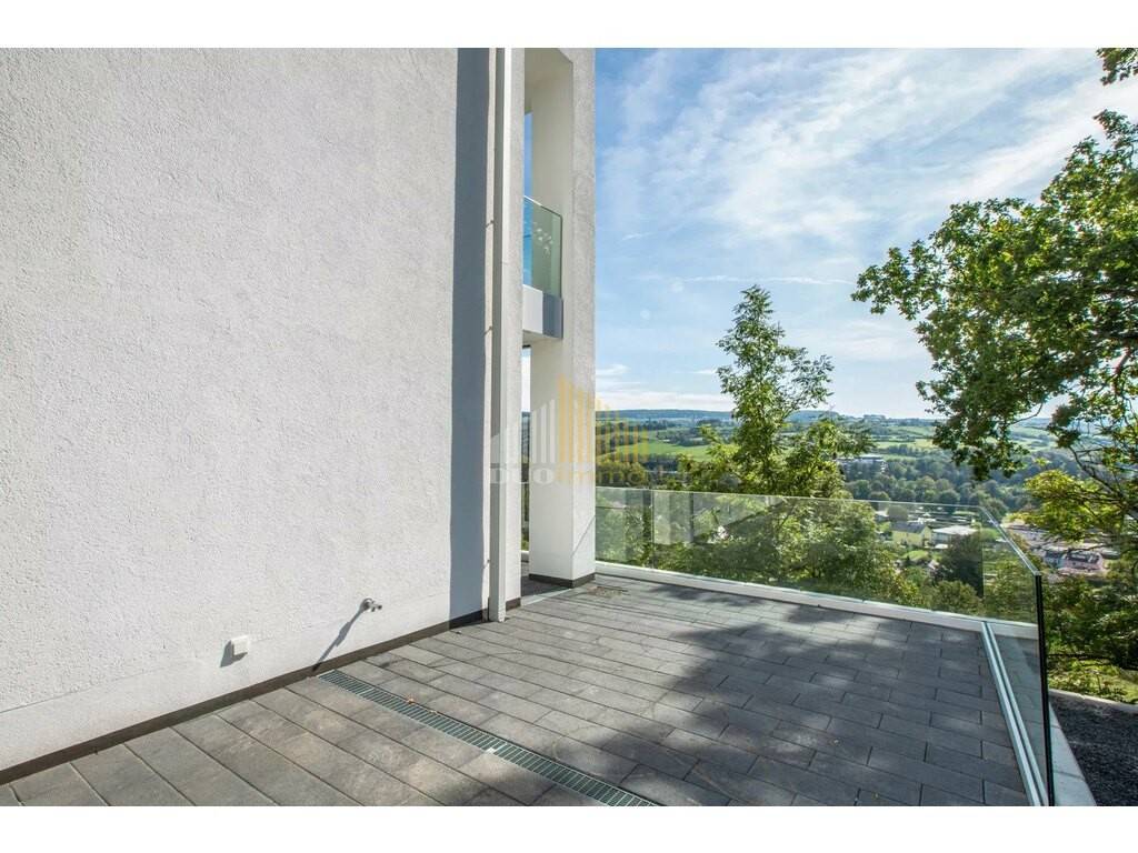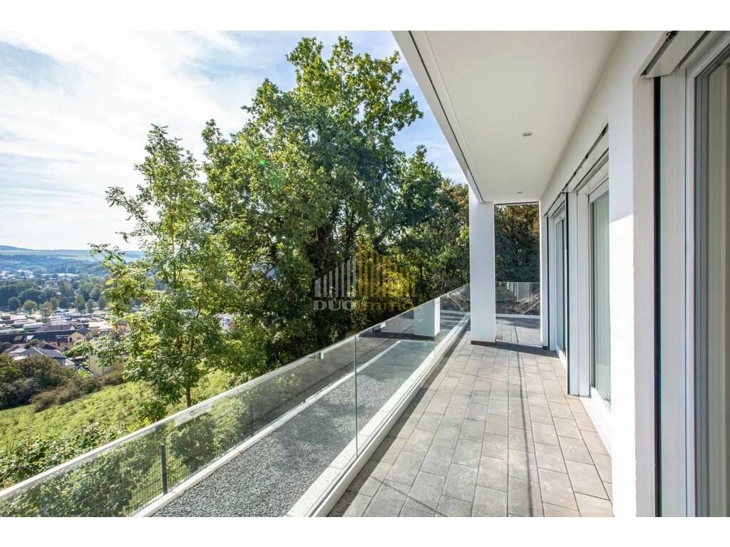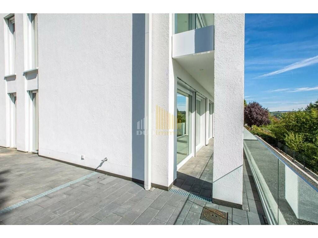 - Entrée spacieuse - WC visiteurs - Salon/salle à manger lumineux avec cuisine intégrée, grands éléments soulevants-coulissants qui donnent accès à la terrasse avec un débarras supplémentaire et vous permettent d'agrandir l'espace de vie en été. La terrasse généreuse qui fait le tour de la maison offre une vue de rêve sur Echternach. - buanderie avec raccordement pour machine à laver/séchoir/réfrigérateur - Salle de bain avec douche de plain-pied et WC - Chambre à coucher 1 - Chambre à coucher 2